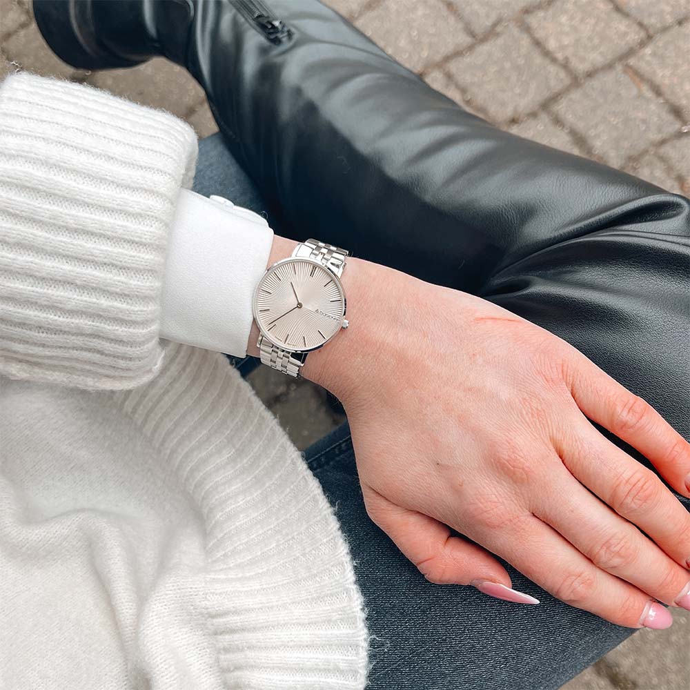 Klassische Uhren: Linée Champagnerfarben Silber Gliederarmband 4461128