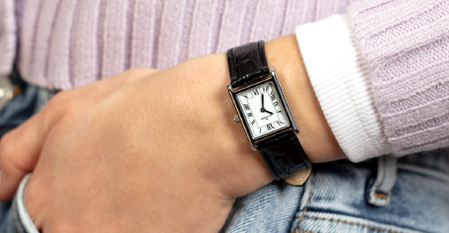 Klassische Uhren: Quadra Classica Weiß Silber Lederband Schwarz 4460700