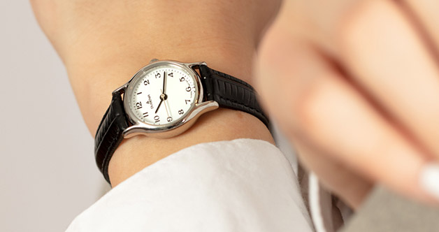 Klassische Uhren: Vintage Weiß Silber Lederband Schwarz 4460536