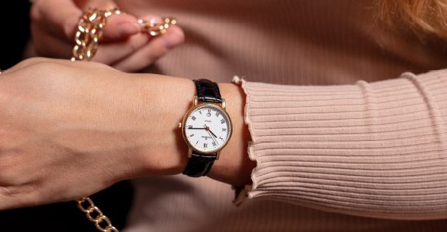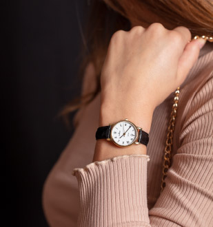 Klassische Uhren: Zenit Weiß Gold Lederband Schwarz 4460366