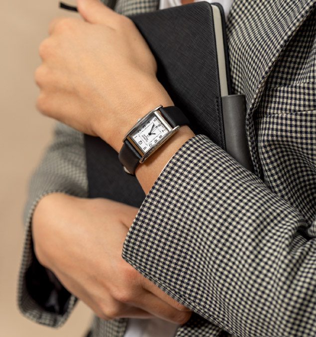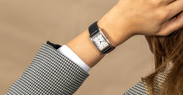Vintage Uhren: Quadra Artdéco Weiß Silber Lederband Schwarz 7000119