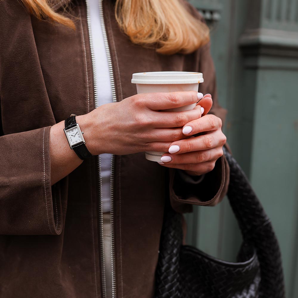 Vintage Uhren: Quadra Classica Weiß Silber Lederband Schwarz 4460700-1