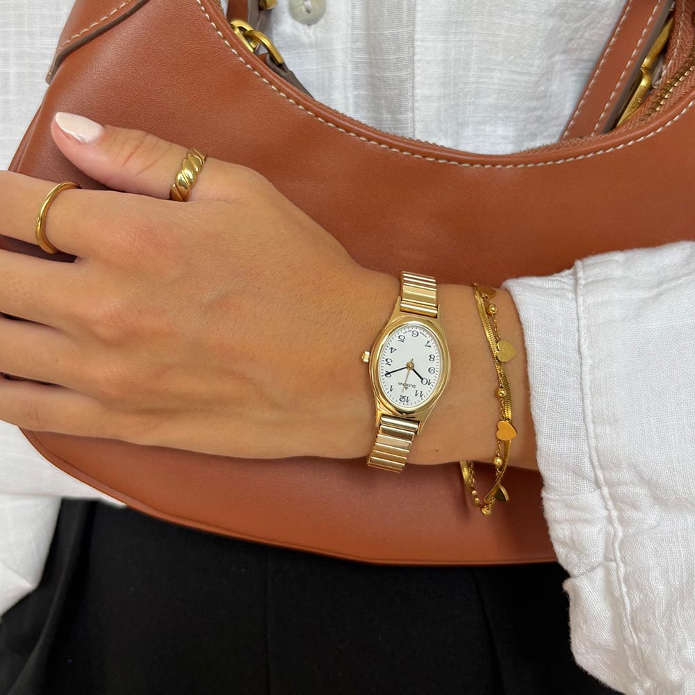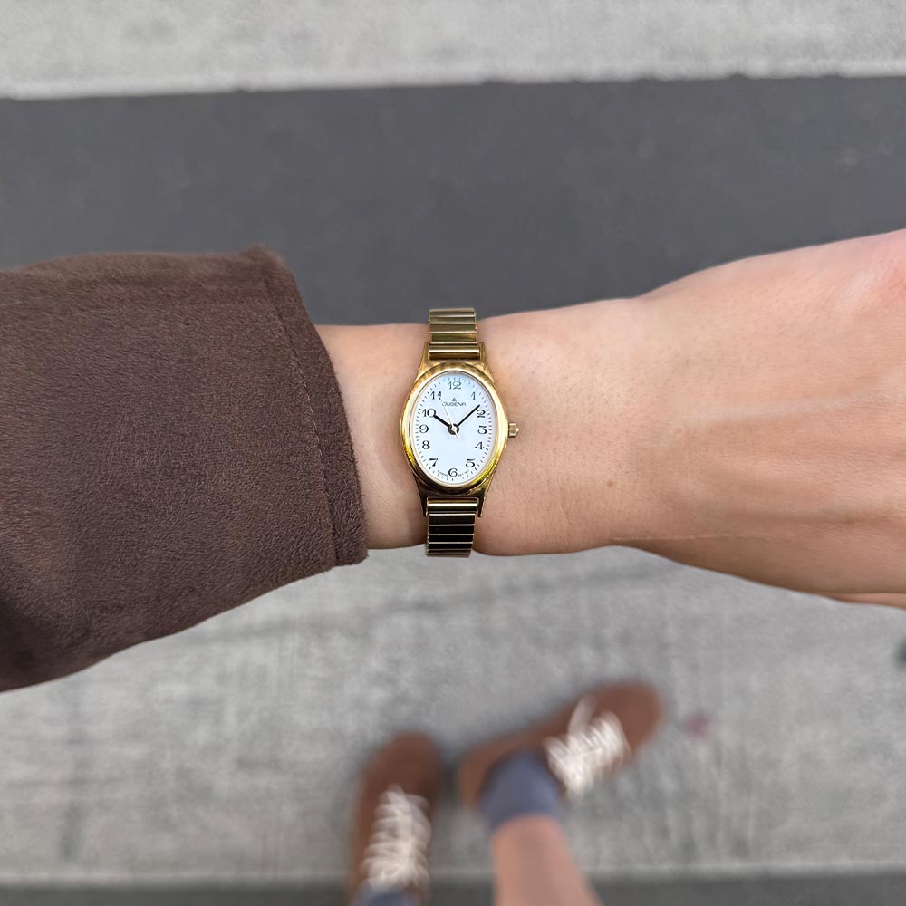 Vintage Uhren: Vintage Comfort Weiß Gold Zugband Gold 4168003-1
