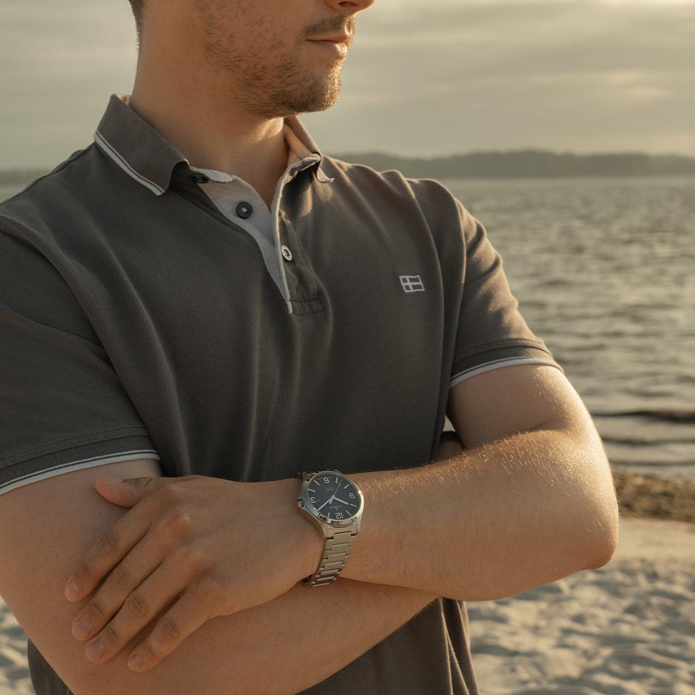Solaruhr, Edelstahl, wasserdicht bis 10 bar. Drückerfaltschließe, Saphirglas, 3 Jahre Garantie