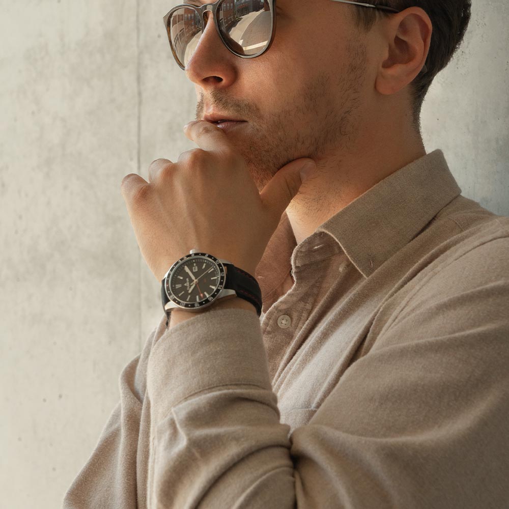 Edelstahl, wasserdicht bis 10 bar, Dornschließe, Saphirglas, 3 Jahre Garantie